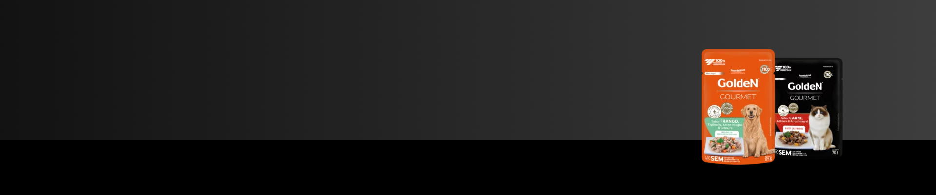 Para mais interações de carinho e cuidado com seu pet, desenvolvemos a linha de alimentos úmidos GoldeN® Gourmet. São produzidos com ingredientes naturais, ricos em vitaminas e minerais, sem corantes e aromatizantes artificiais. GoldeN® Gourmet, um alimento deliciosamente saudável.