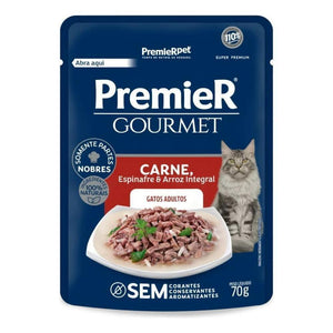 Ração Úmida para Gatos Castrados Adultos Carne, Espinafre e Arroz Integral Premier Gourmet 70G