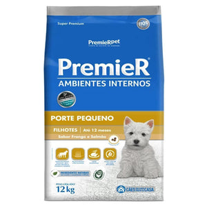 Ração Premier Pet Ambientes Internos Cães Filhotes Frango e Salmão 12kg