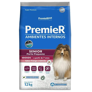 Ração para Ambientes Internos Cães Adultos Sênior Frango e Salmão Premier Pet 12Kg