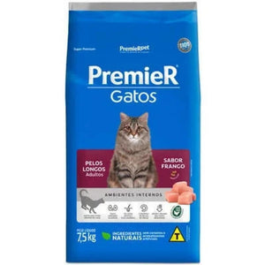 Ração para Ambientes Internos Gatos Adultos Pelo Longo Frango Premier 7,5Kg