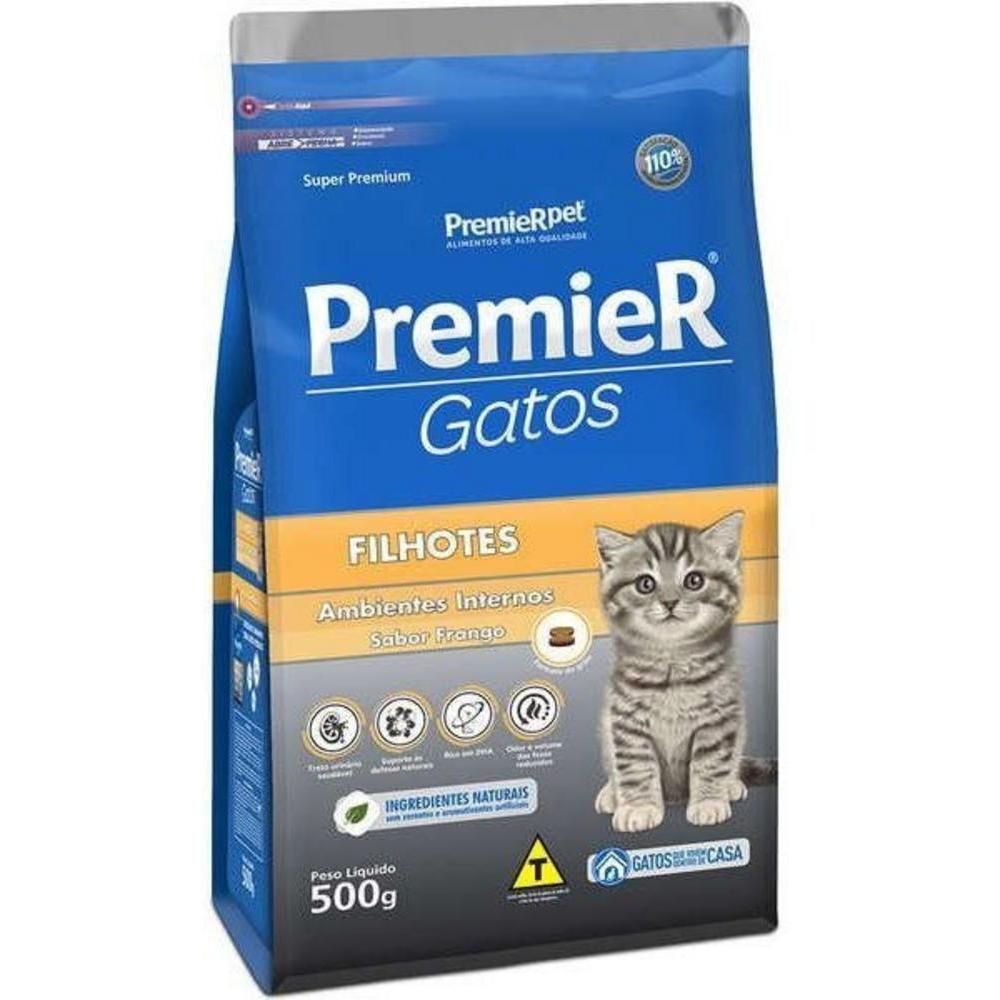 Ração para Gatos Filhotes Ambientes Internos Sabor Frango Premier Pet 500G